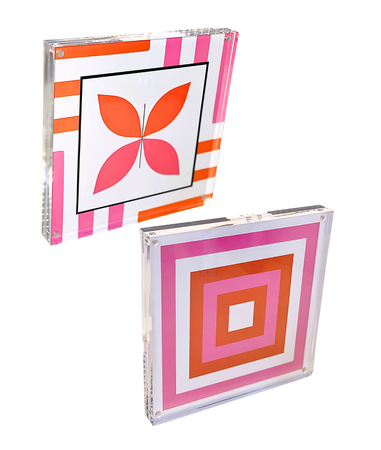4”x4” double sided art prints in heavy duty square lucite frame. Perfectly...