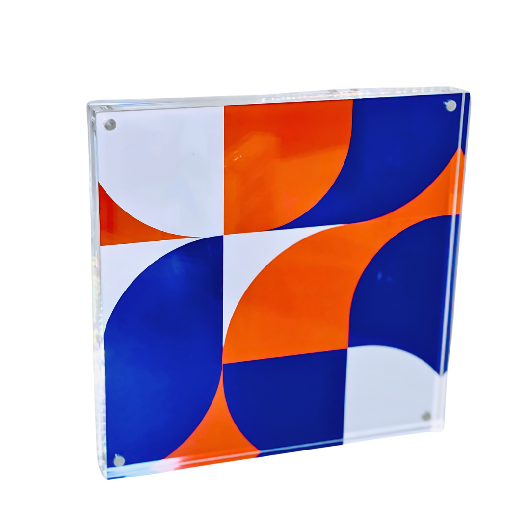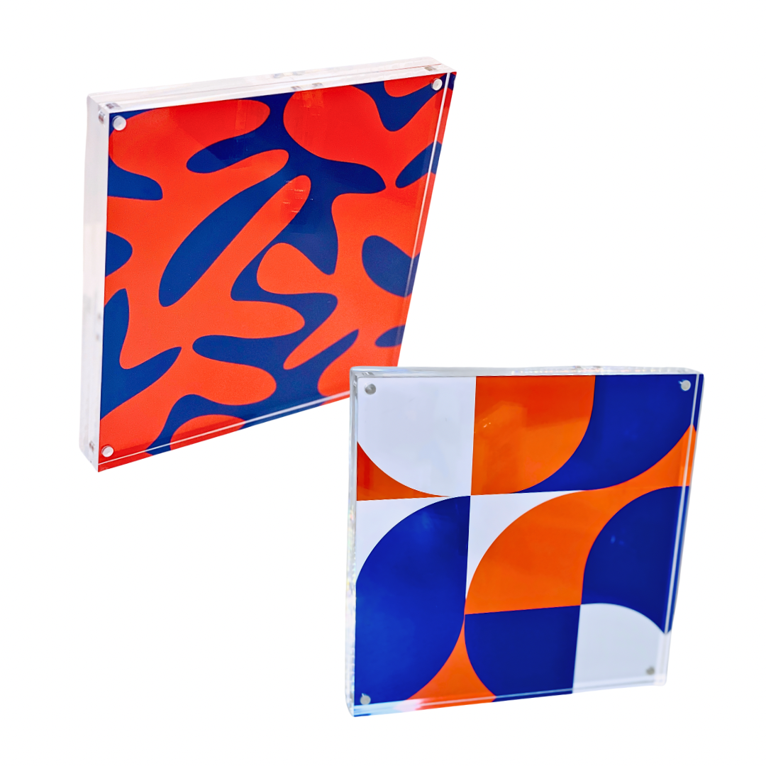 4”x4” double sided art prints in heavy duty square lucite frame. Perfectly sized to pair with larger Shelfie and your other favorite decor to style your bookshelves, console/coffee tables, nightstands, pianos… anywhere you need a pop of color! Delivered in deluxe gift box with corner protectors and cleaning cloth.