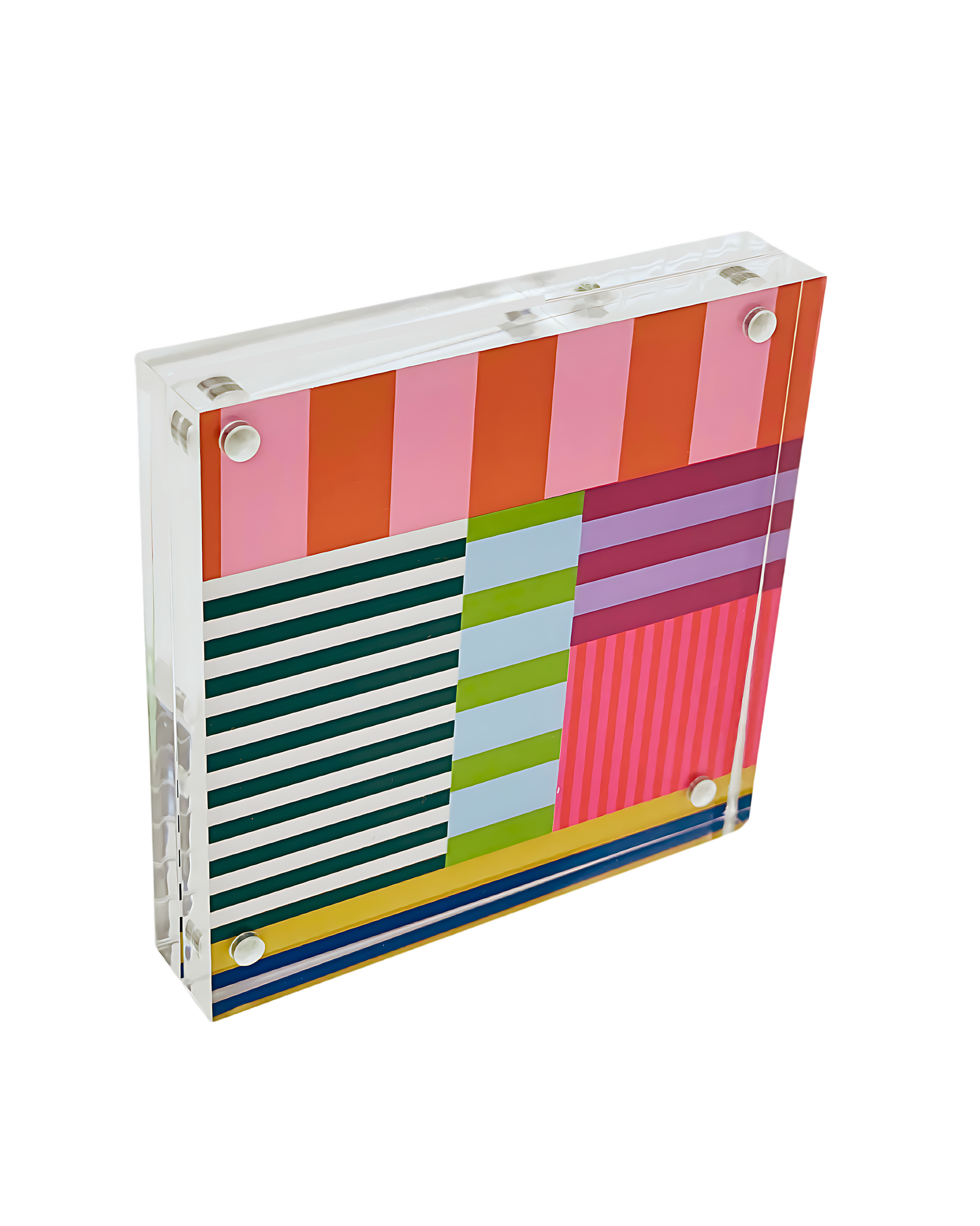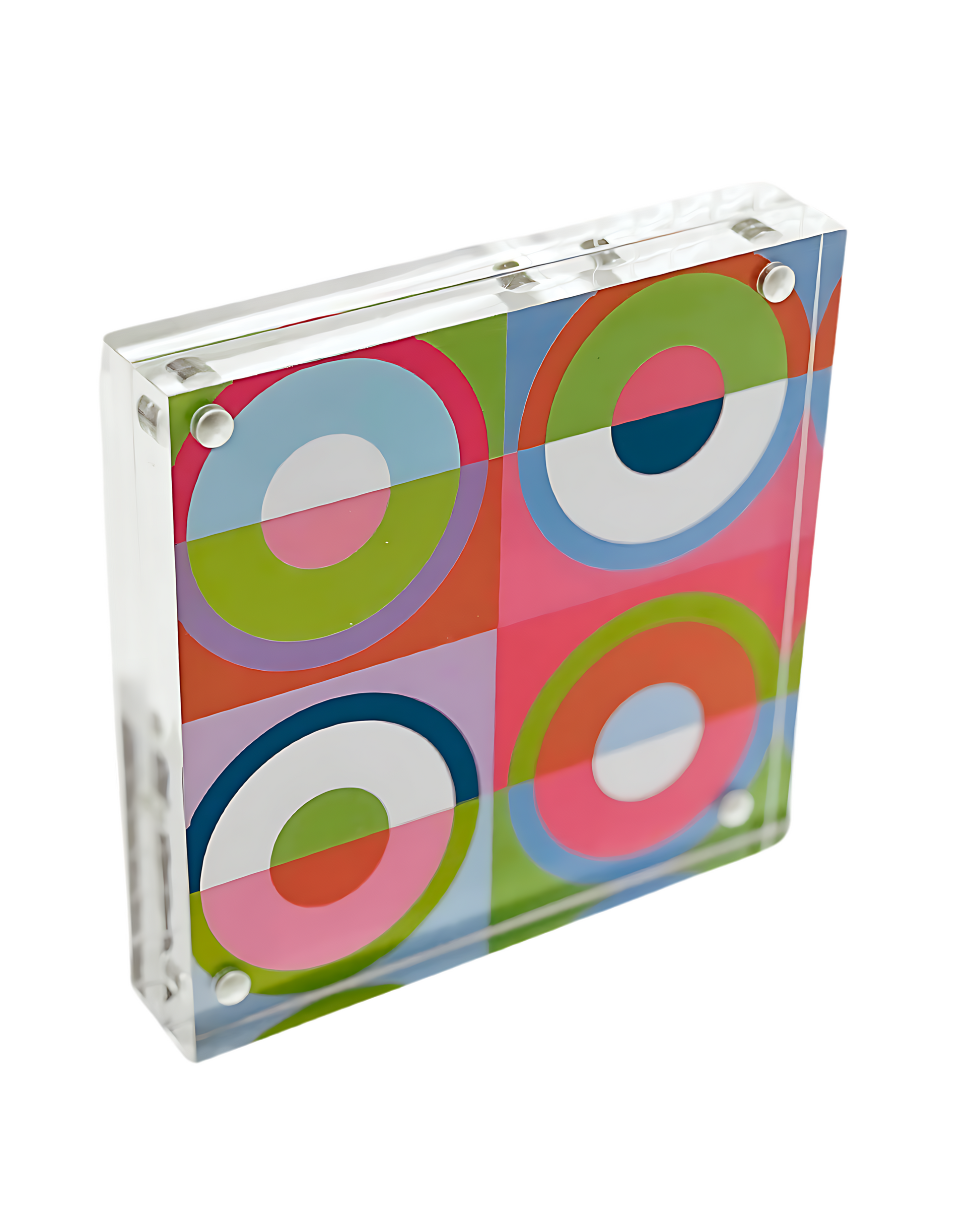 4”x4” double sided art prints in heavy duty square lucite frame. Perfectly sized to pair with larger Shelfie and your other favorite decor to style your bookshelves, console/coffee tables, nightstands, pianos… anywhere you need a pop of color! Delivered in deluxe gift box with corner protectors and cleaning cloth.