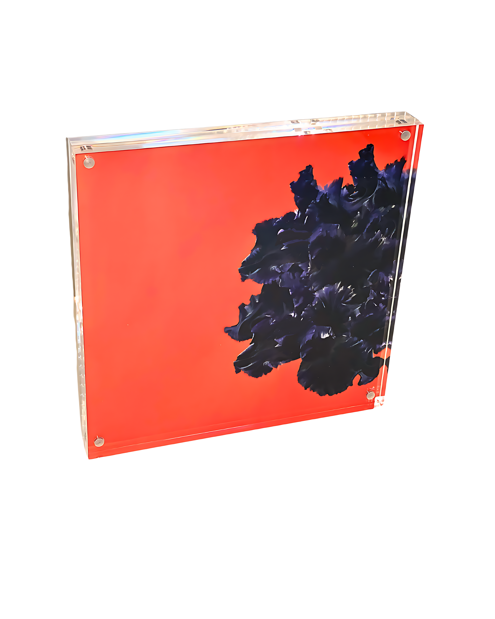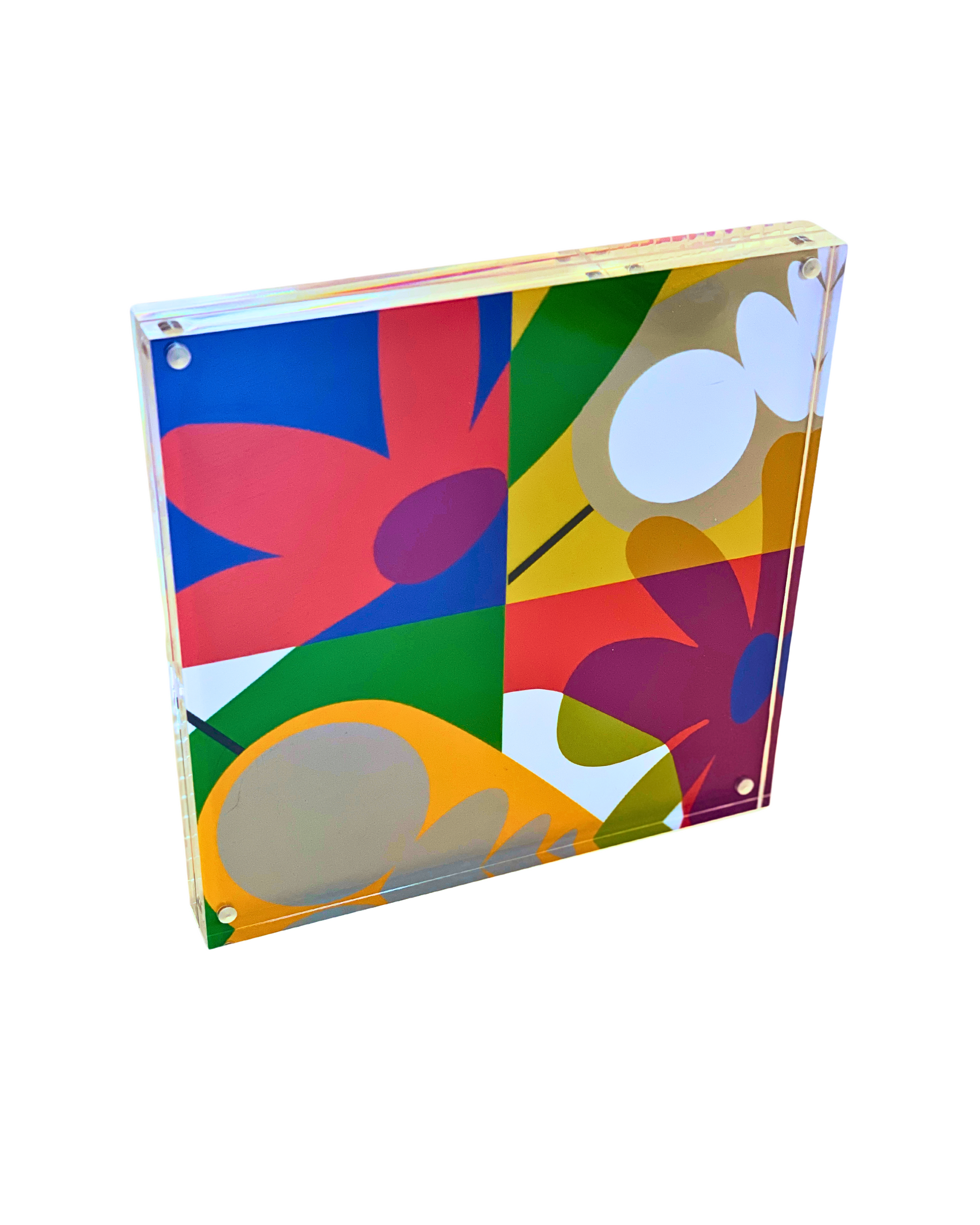 4”x4” double sided art prints in heavy duty square lucite frame. Perfectly sized to pair with larger Shelfie and your other favorite decor to style your bookshelves, console/coffee tables, nightstands, pianos… anywhere you need a pop of color! Delivered in deluxe gift box with corner protectors and cleaning cloth.