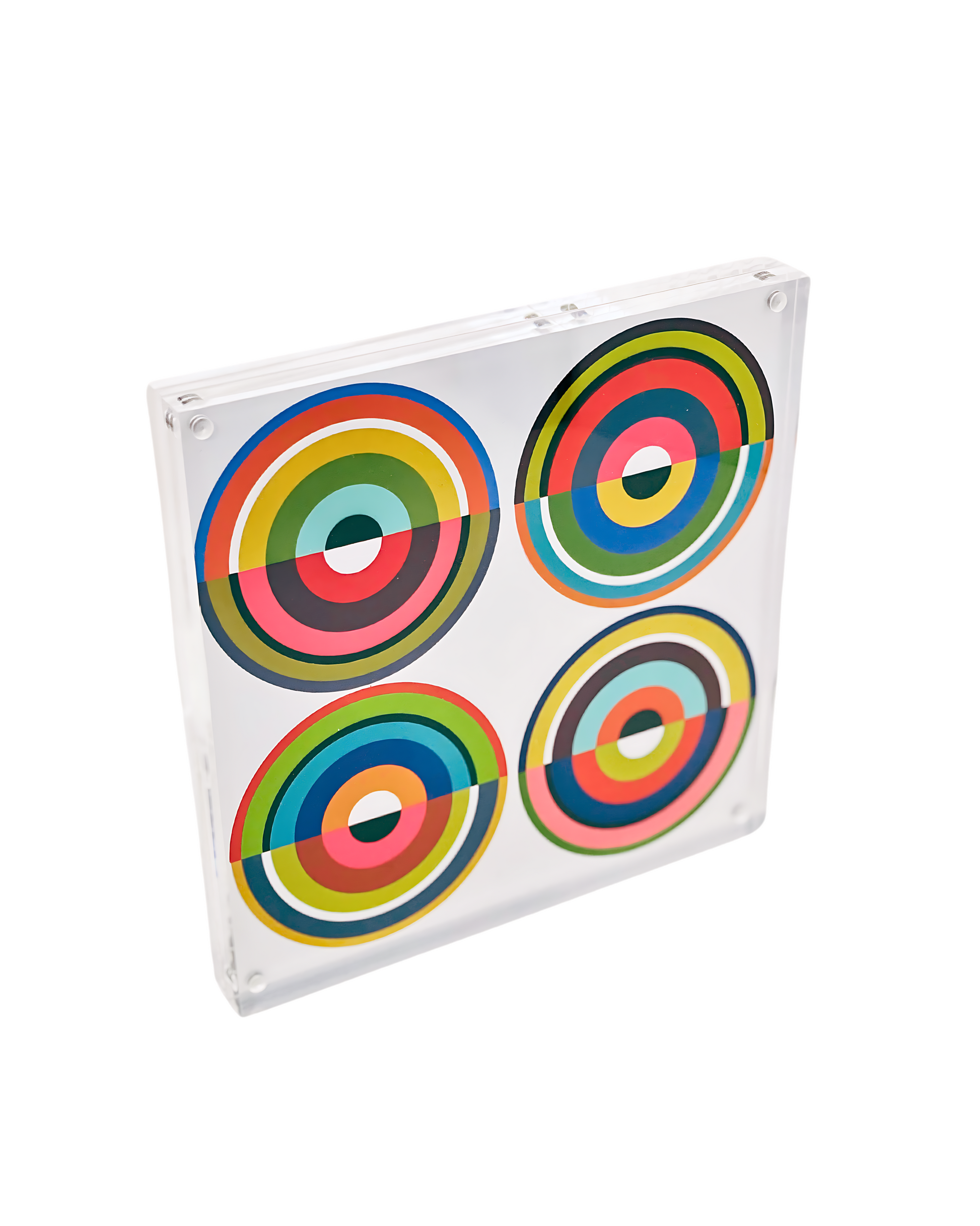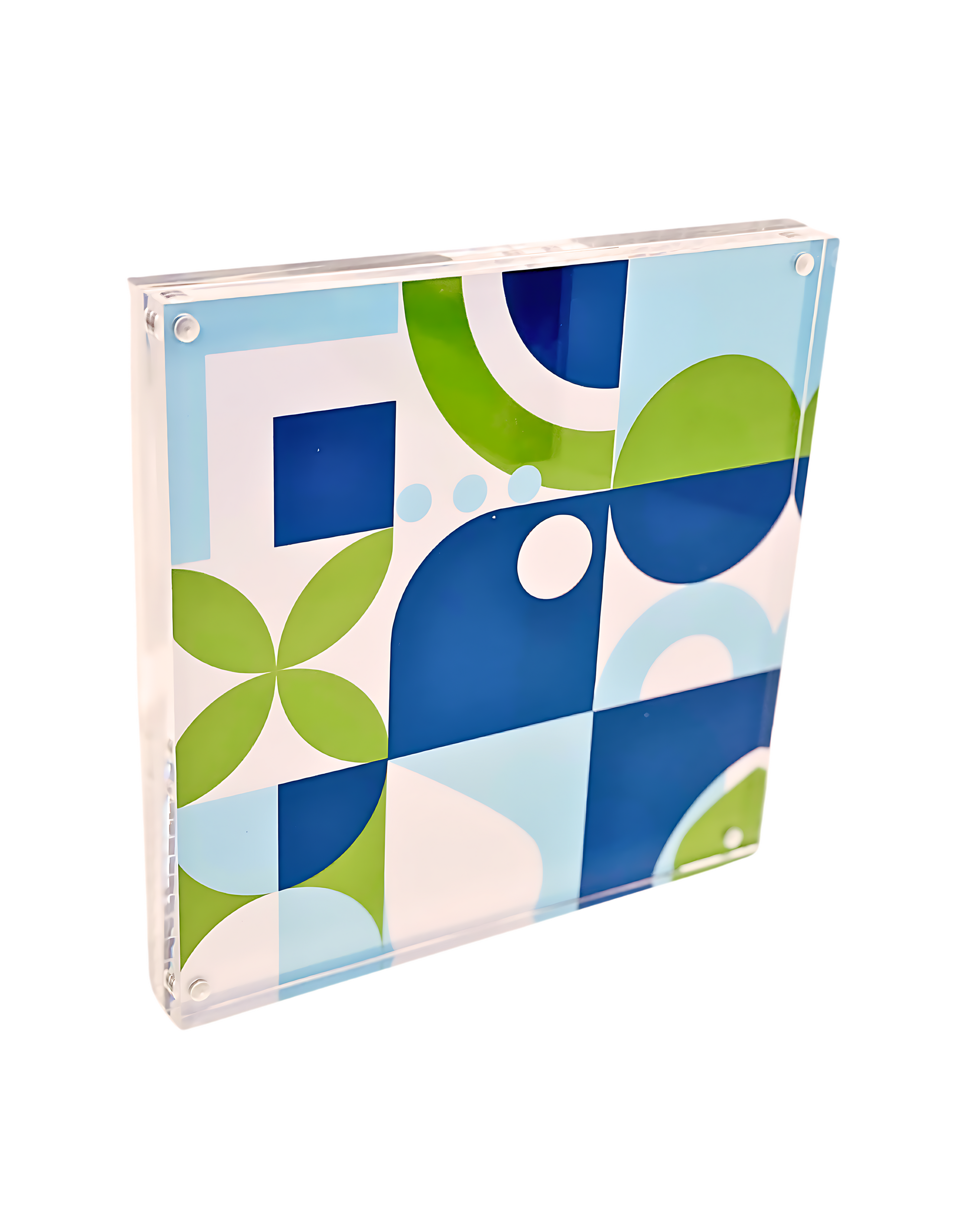4”x4” double sided art prints in heavy duty square lucite frame. Perfectly sized to pair with larger Shelfie and your other favorite decor to style your bookshelves, console/coffee tables, nightstands, pianos… anywhere you need a pop of color! Delivered in deluxe gift box with corner protectors and cleaning cloth.