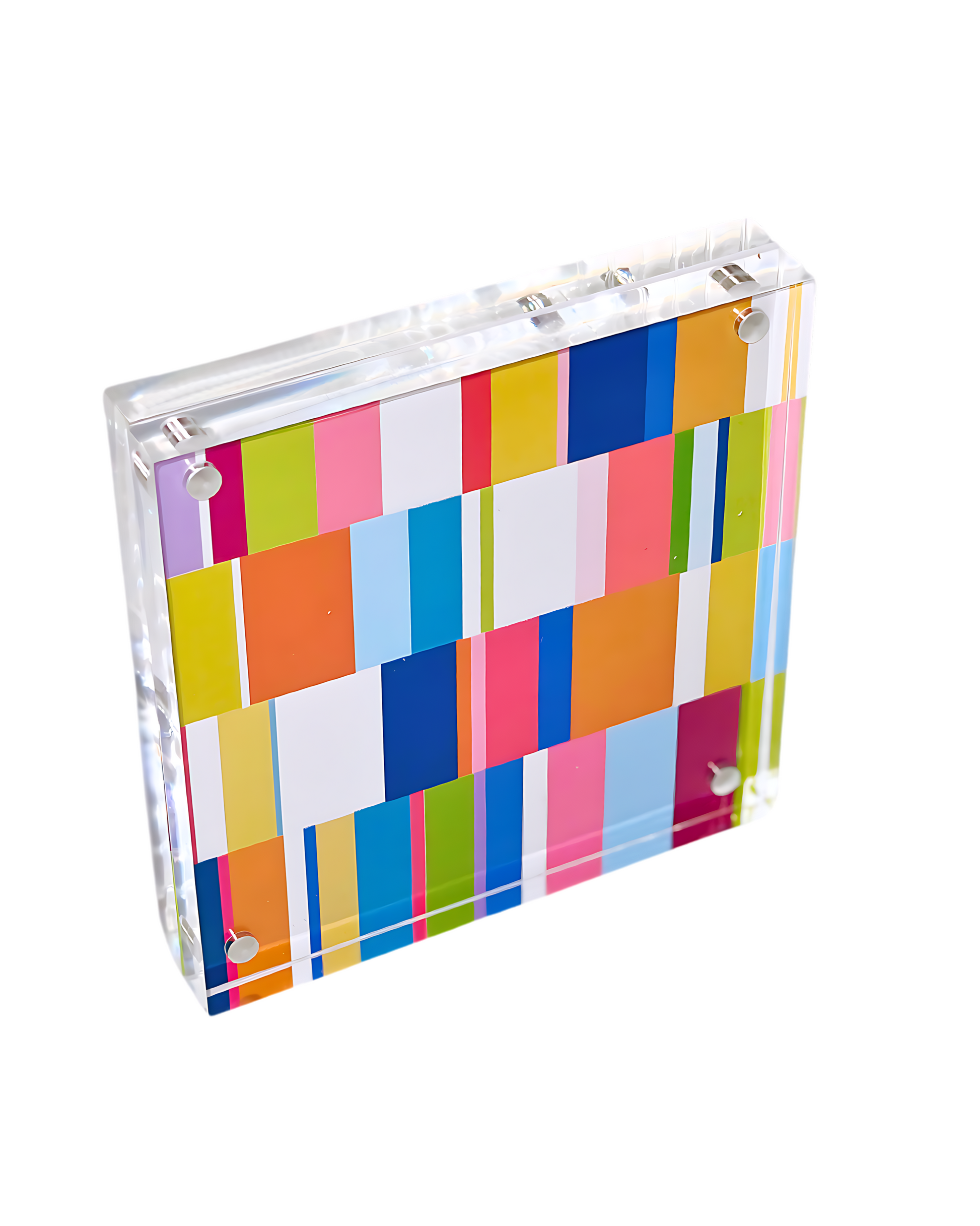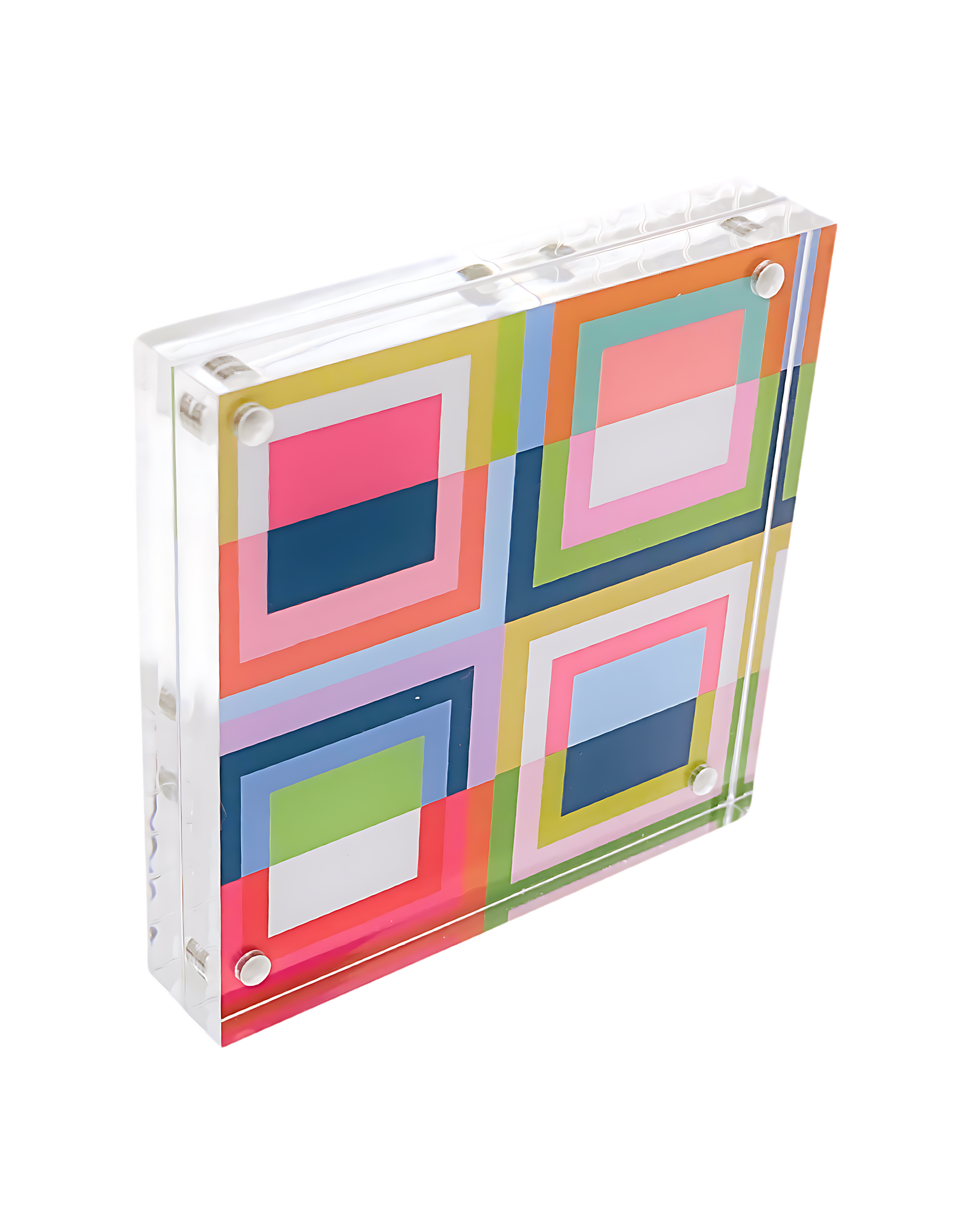 4”x4” double sided art prints in heavy duty square lucite frame. Perfectly sized to pair with larger Shelfie and your other favorite decor to style your bookshelves, console/coffee tables, nightstands, pianos… anywhere you need a pop of color! Delivered in deluxe gift box with corner protectors and cleaning cloth.