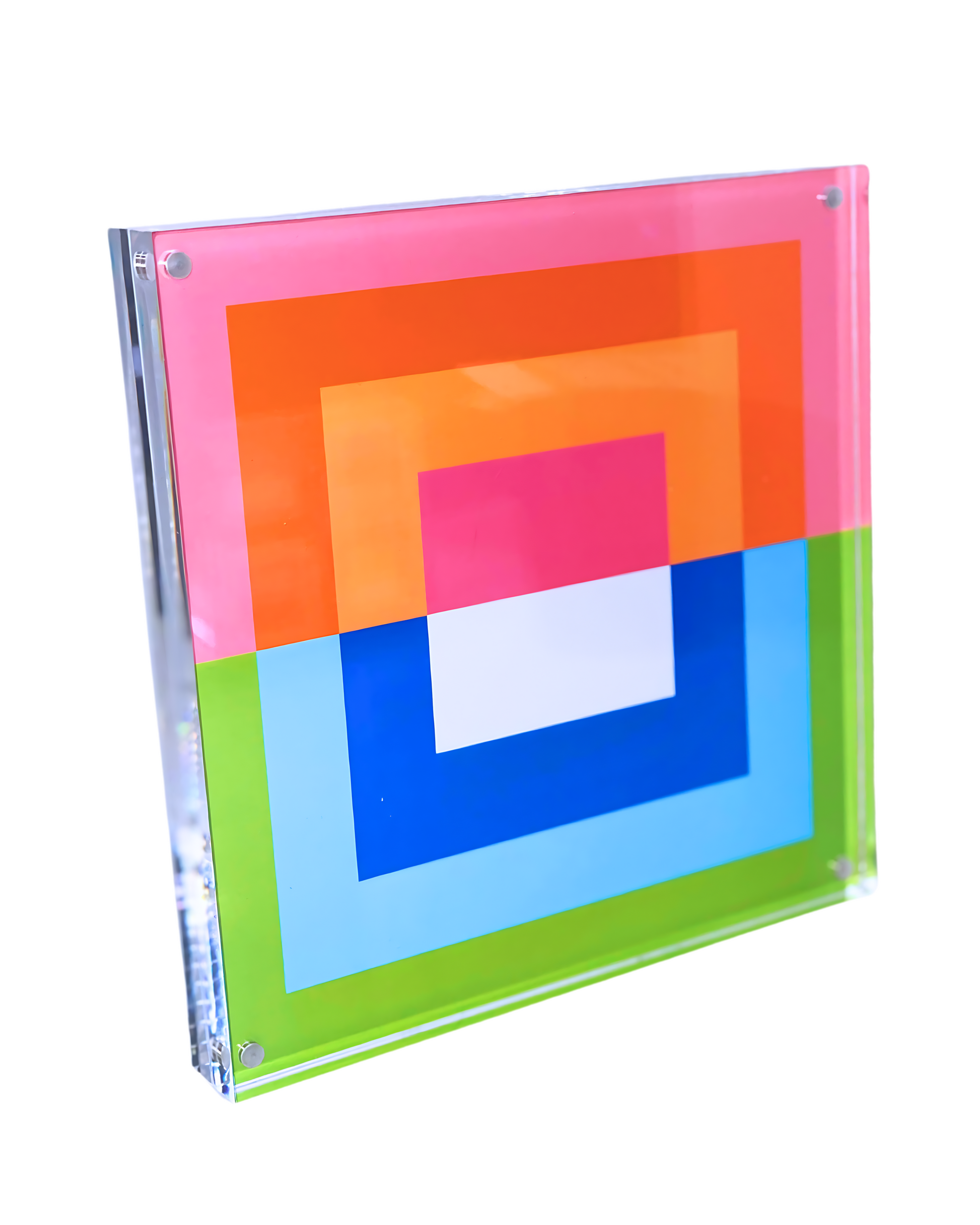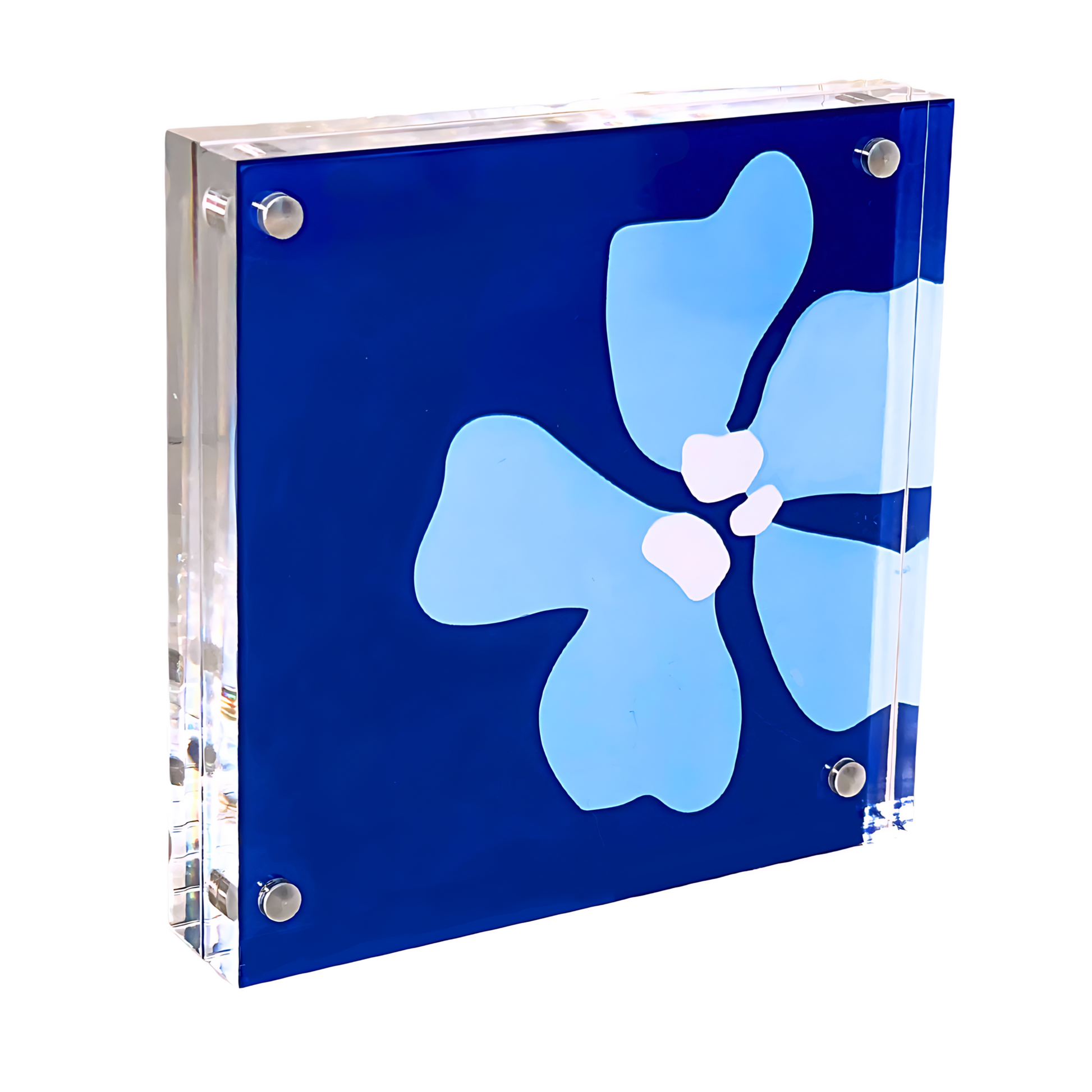 8”x 8” double sided art prints in heavy duty square lucite frame. Perfectly sized to pair with smaller Shelfie and your other favorite decor to style your bookshelves, console/coffee tables, nightstands, pianos… anywhere you need a pop of color! Delivered in deluxe gift box with corner protectors and cleaning cloth.